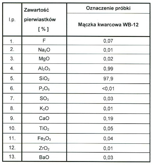 Im ständigen Sortiment haben wir zwei Arten von Mehlen mit unterschiedlichen Korngröße: 1. Weisse Mehl : Eisengehalt <0,05%: a. WB-8 (hier Forschungsergebnisse) b. WB-10 (hier Forschungsergebnisse) c. WB-12 (hier Forschungsergebnisse) 2. Mehlen : höherer Eisengehalt d. W-3 (hier Forschungsergebnisse) e. W-8 (hier Forschungsergebnisse) f. W-12 (hier Forschungsergebnisse)
